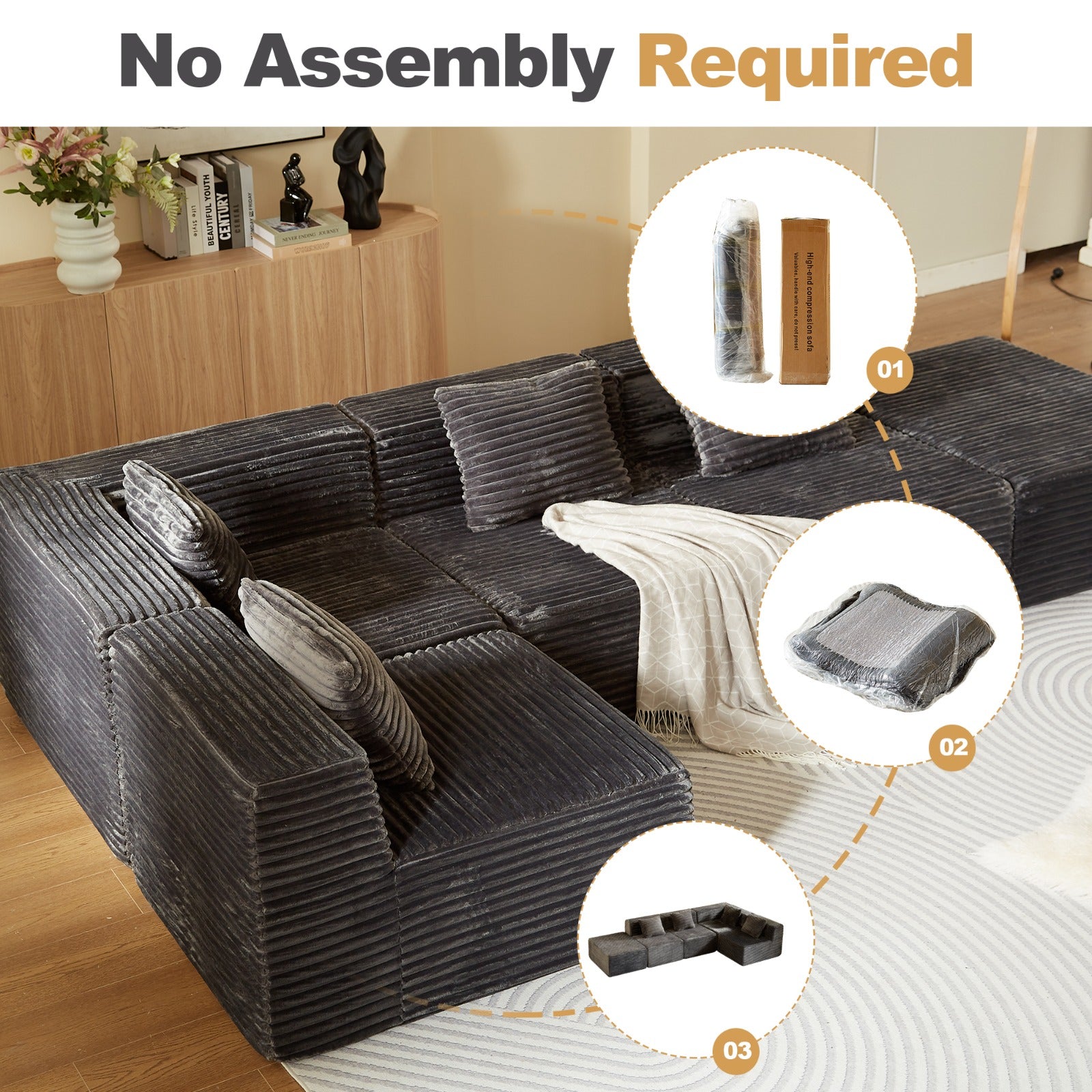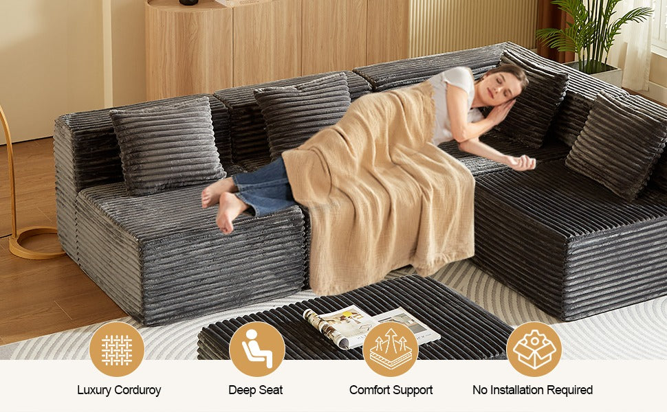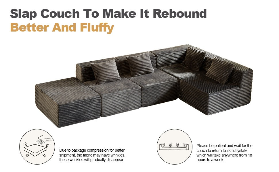 Designed for multi-purpose use, this modular sofa works equally well as a main living room couch, guest seating, or a relaxed floor-style lounge. No assembly is required — simply unbox, fluff the cushions, and allow up to 7 days for the sofa to fully expand into shape.