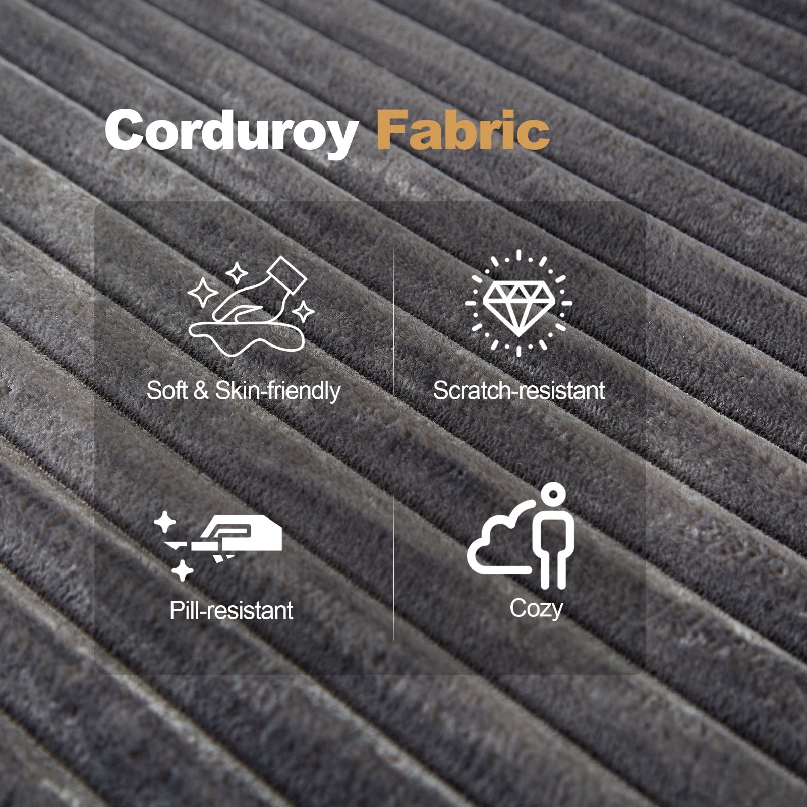 Upholstered in ultra-soft corduroy fabric, Azure Modula offers a smooth, warm feel with a subtle refined finish. Plush cushions and supportive back pillows are generously filled to provide comfortable lumbar and back support for everyday lounging.