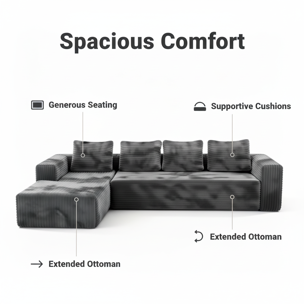 The Fableux Modula Modular Sectional Sofa is designed to bring relaxed luxury, flexibility, and modern comfort into your home. Featuring a spacious L shaped layout and soft corduroy upholstery, this modular sofa is perfect for contemporary living spaces where comfort and versatility matter most.