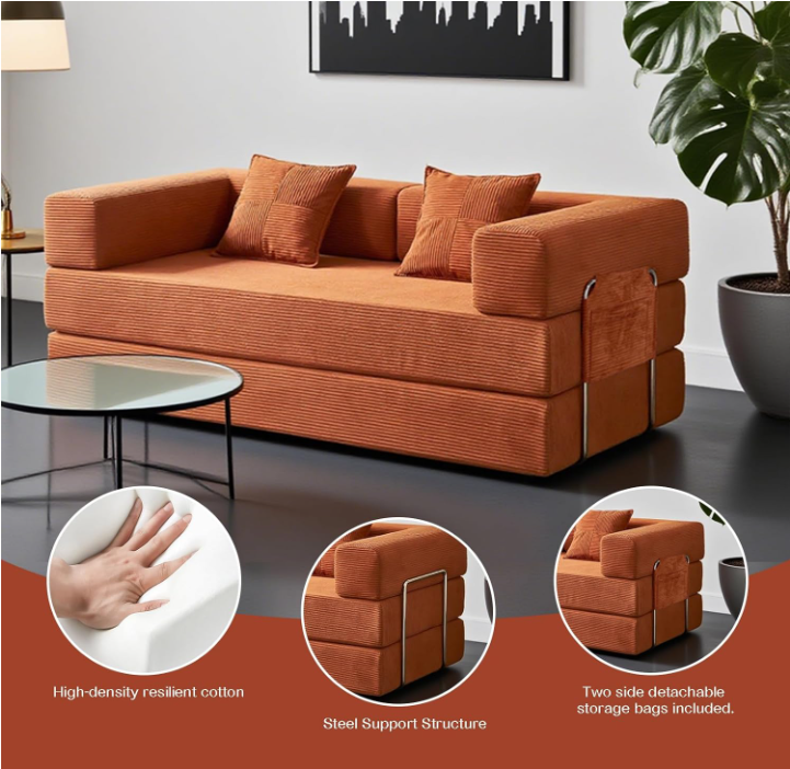 This versatile sofa bed easily transforms from a refined foam couch into a comfortable sleeper sofa bed. When not in use as a bed, the mattress folds into a boneless floor couch that is perfect for small spaces. Ideal for apartments, offices, dorm rooms, and guest areas, the Huxley Modula offers maximum flexibility without compromising comfort.